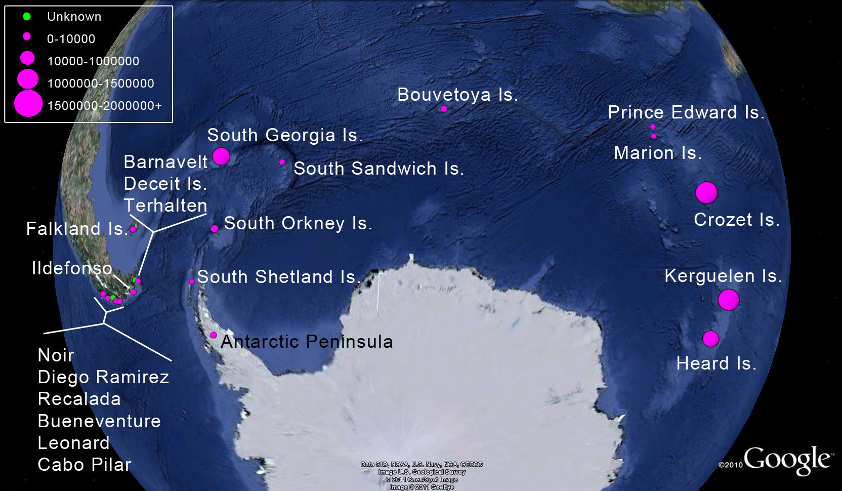 on a number of sub-Antarctic islands throughout the South Atlantic and Indian